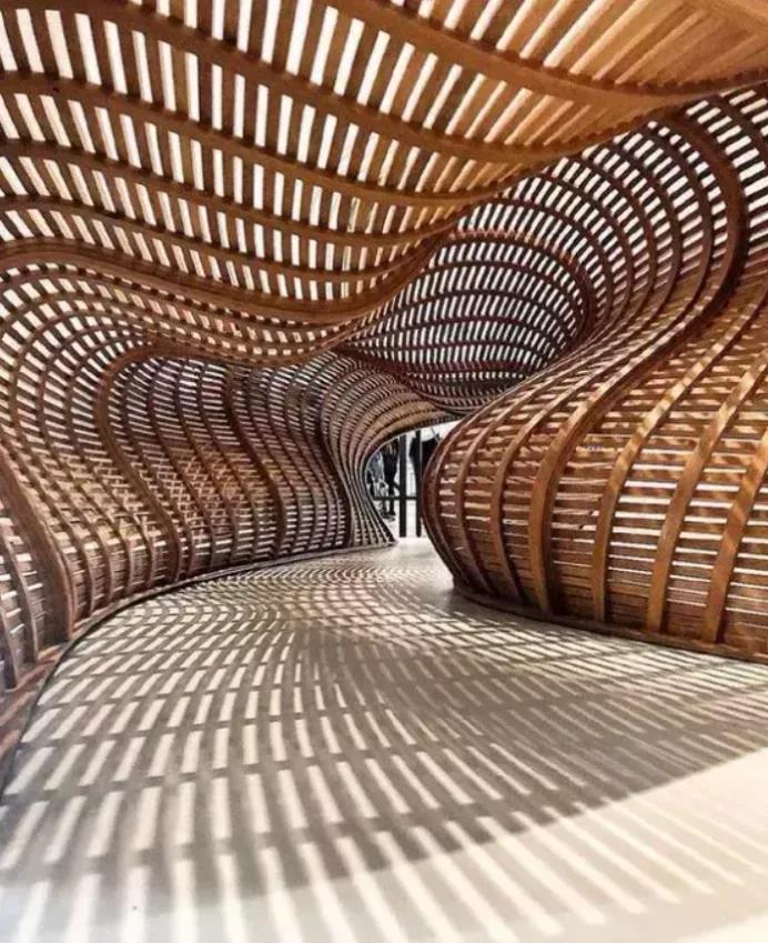 1、有些建筑整體像一個(gè)編織的大盒子,除此之外都是透明設(shè)計(jì),朦朧美與通透性得到了完美結(jié)合,陽光灑落就是最棒的照明。