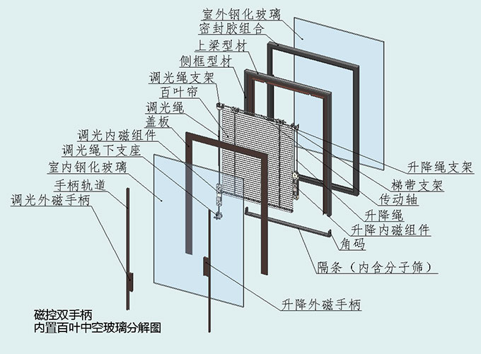 中空百葉玻璃內(nèi)的“兩個磁控內(nèi)手柄”,實現(xiàn)聯(lián)動工作