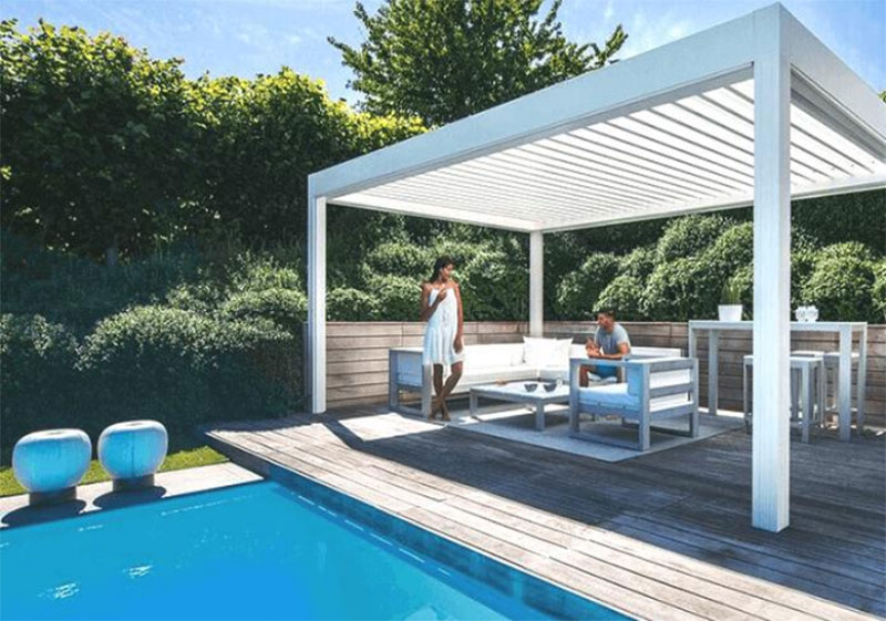 涼亭采用高強度鋁合金簾片,通過電機遙控裝置可以輕松實現(xiàn)從0度到135度的自由翻轉(zhuǎn),在葉片敞 開135度時,可以讓陽光幾乎無遮擋的進入陽光房內(nèi),當(dāng)簾片在0度完全閉合時,不但能100%遮陽,而且完 全防水!該產(chǎn)品不僅標(biāo)配了雨水收集系統(tǒng),還可以根據(jù)客戶室外需要,選配燈光系統(tǒng),在陽光房的四周既 可以選擇敞開式無遮擋,也可以選擇鋁合金或者鋁包木落地移門移窗來遮風(fēng)擋雨,開合之間,隨心所欲! 不僅可以用于別墅或者高端公寓的陽光房,更可以獨立安裝在別墅外的湖邊或者海邊,為主人打造******溫 馨浪漫的美妙空間!