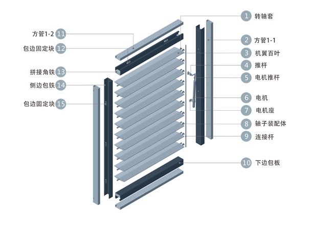 戶外機翼百葉**可承受130km/h的風(fēng)速,本品的安裝將大大降低建筑物外部裸露的玻璃幕墻所要承受的風(fēng)壓。
